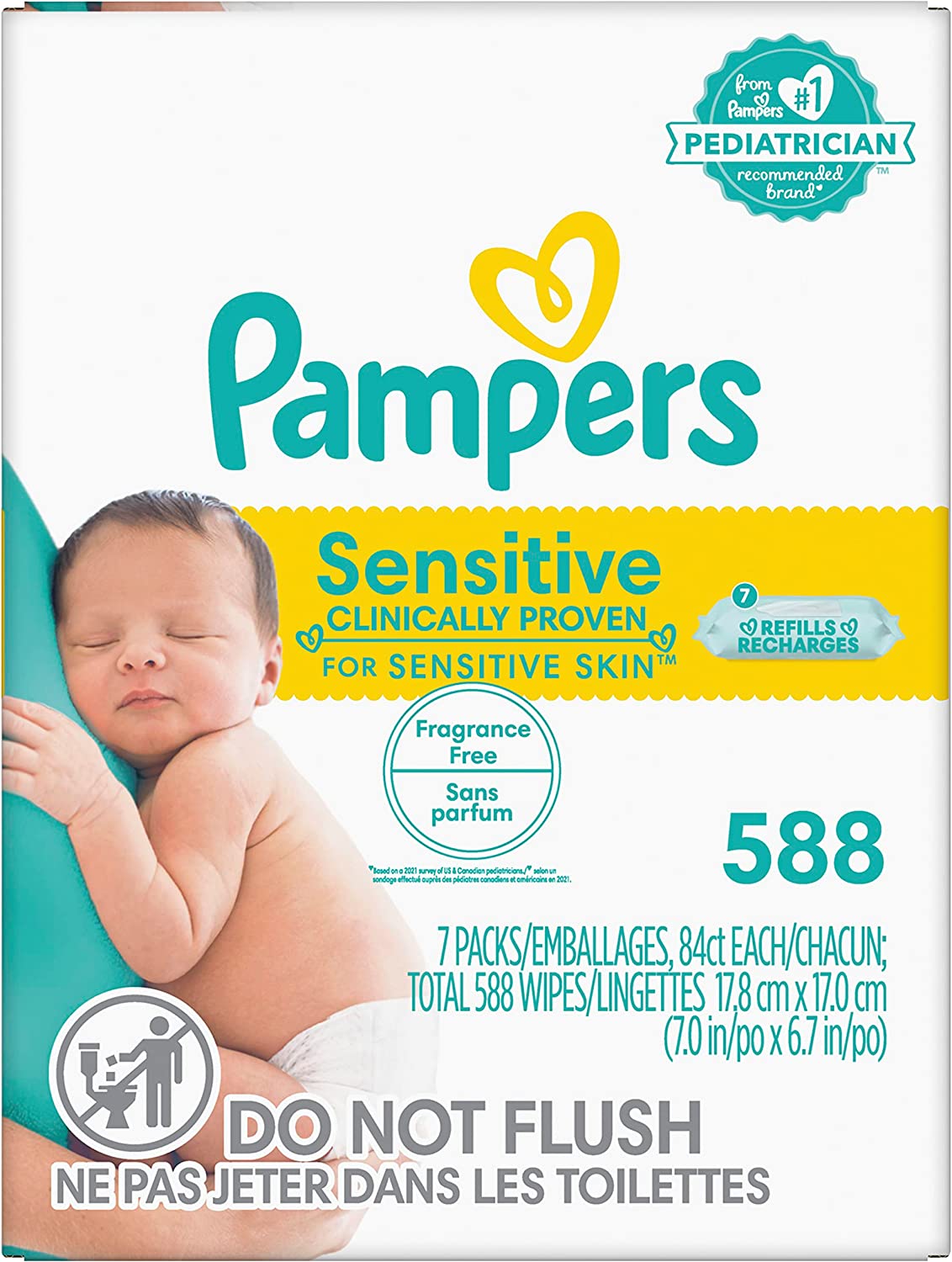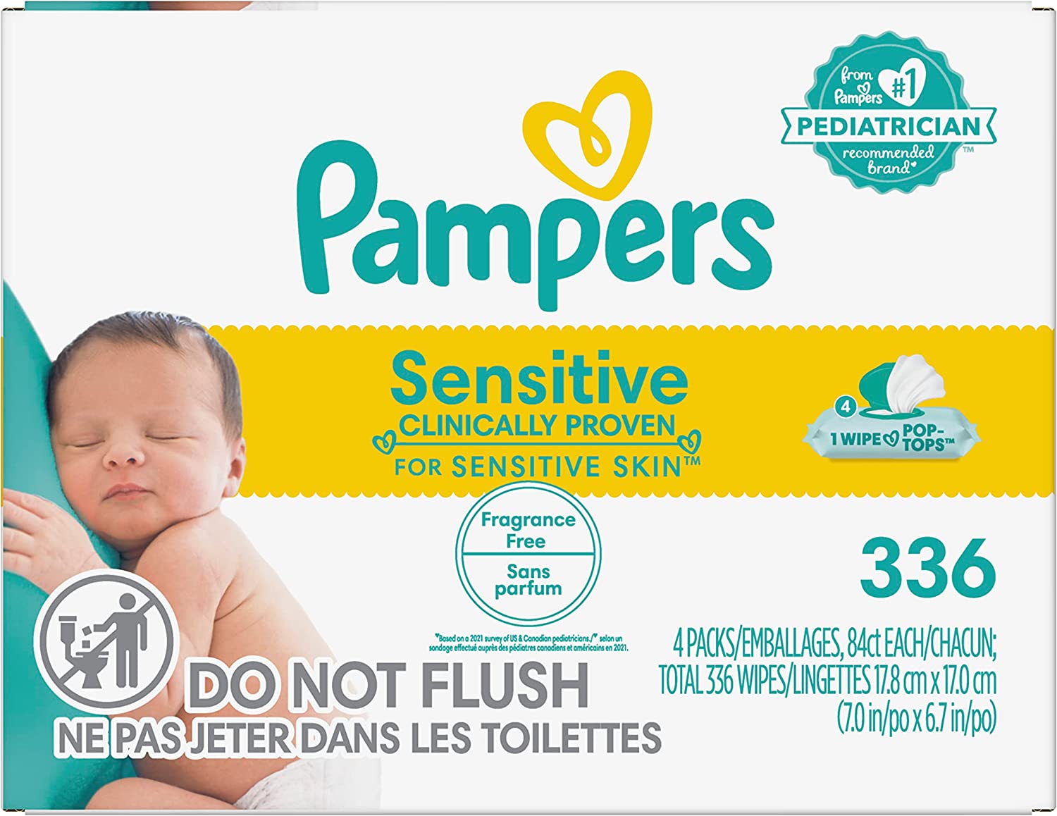 26 reviews for Baby Wipes, Pampers Sensitive Water Based Baby Diaper Wipes, Hypoallergenic and Unscented, 8 Pop-Top Packs with 4 Refill Packs for Dispenser Tub, 864 Total Wipes (Packaging May Vary)