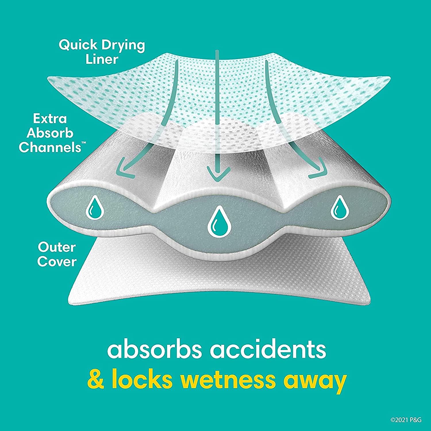 • Extra Absorb Channels quickly lock wetness away from skin